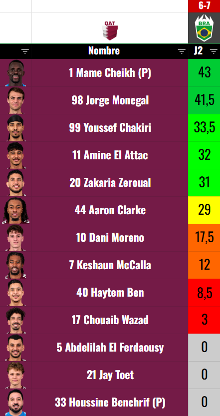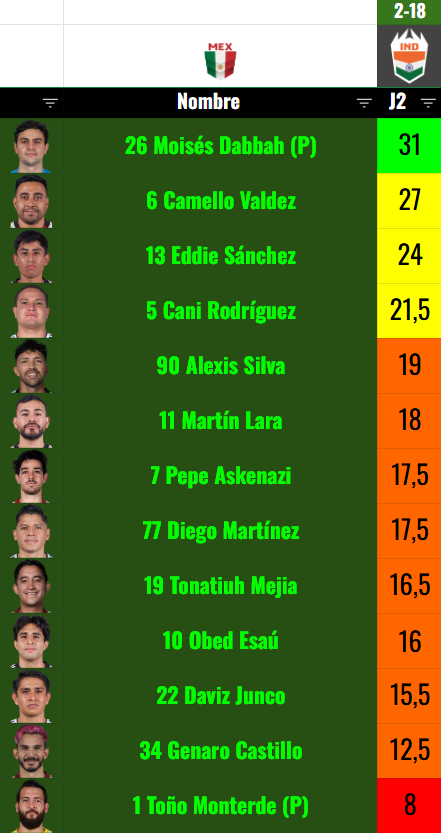 Una vez finalizados todos los partidos de la jornada 2 de la Kings World Cup Nations 2026, estas son las tabla de minutos jugados de todas las selecciones: