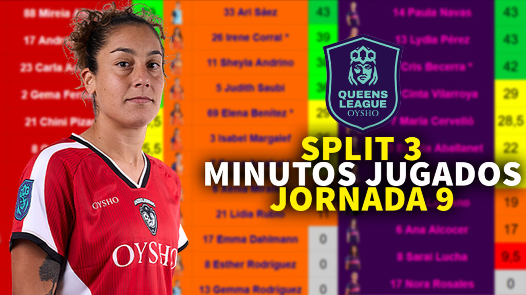Una vez finalizada la jornada 9 de la Queens League (Split 3) estas son las tabla de minutos jugados de todos los equipos: