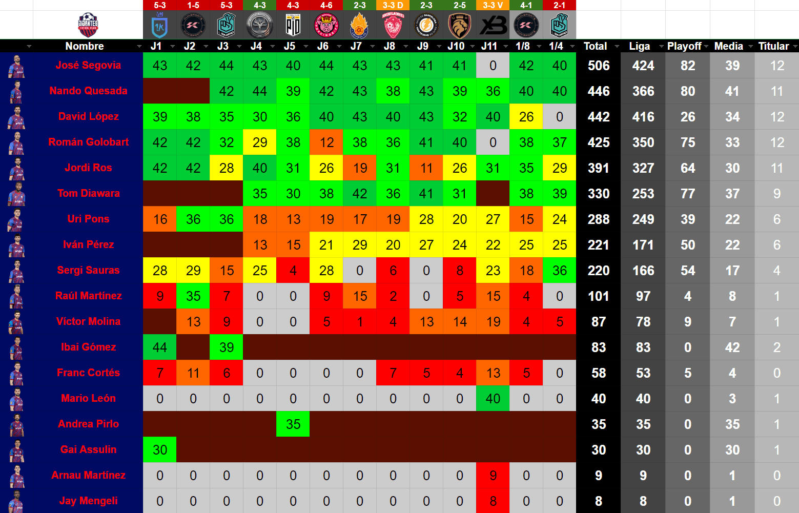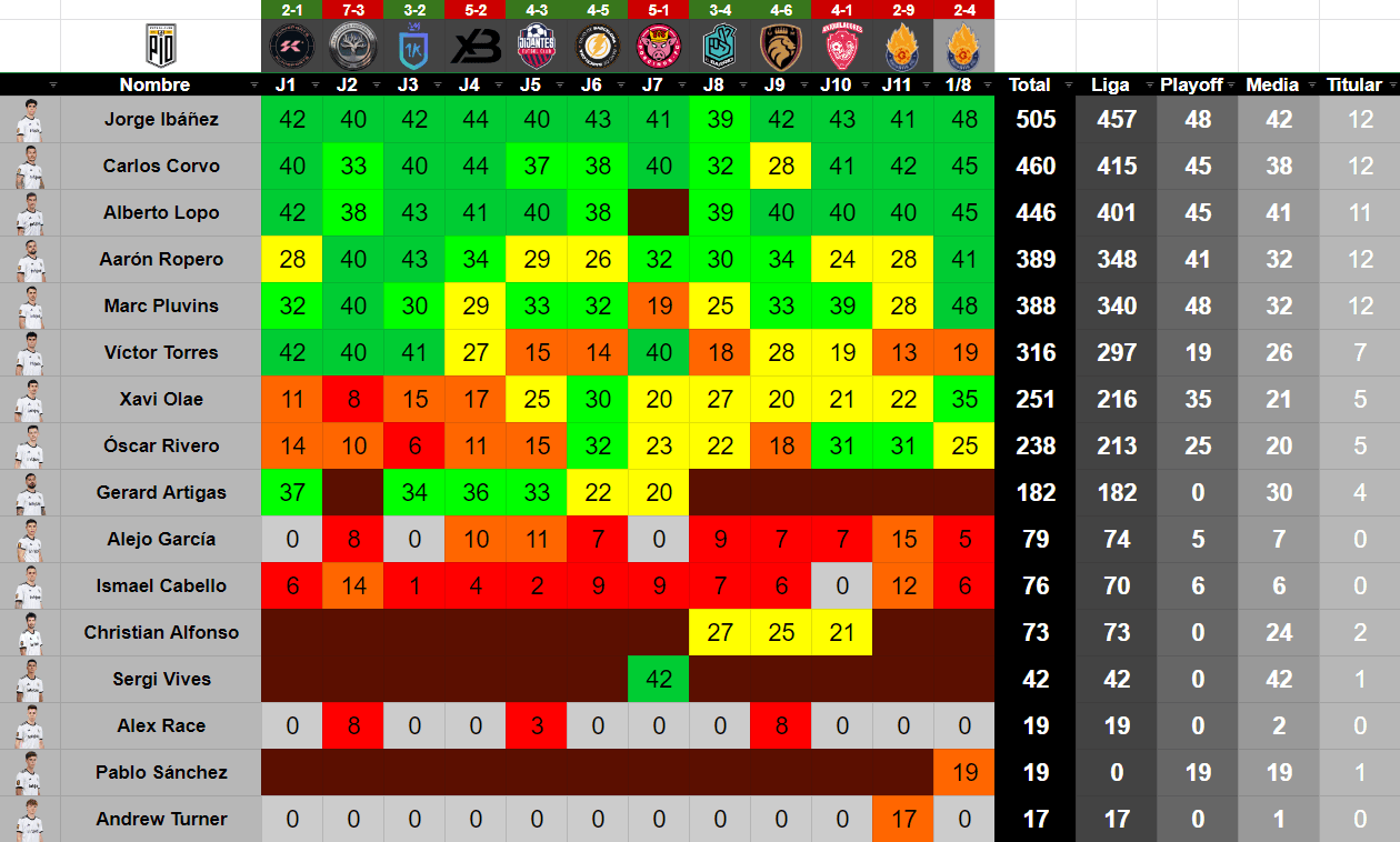 Máximos goleadores historia 1KKings League (Split 1 + split 2 + split 3 + split 4)(Playoffs incluidos)