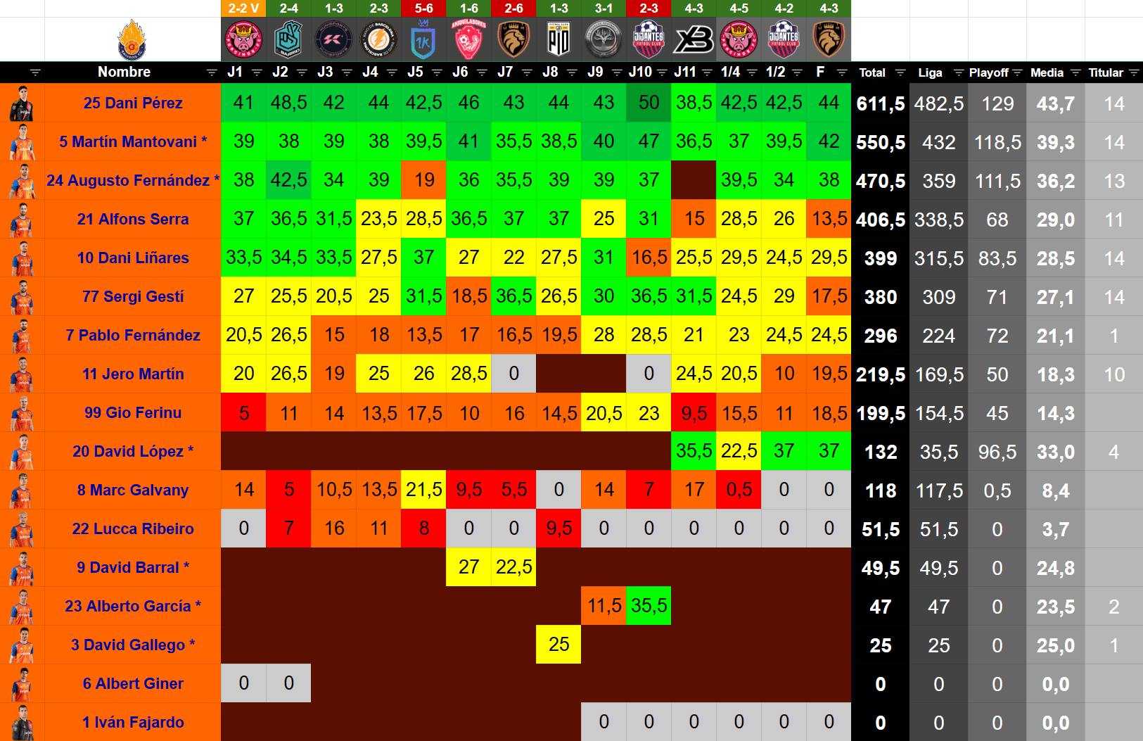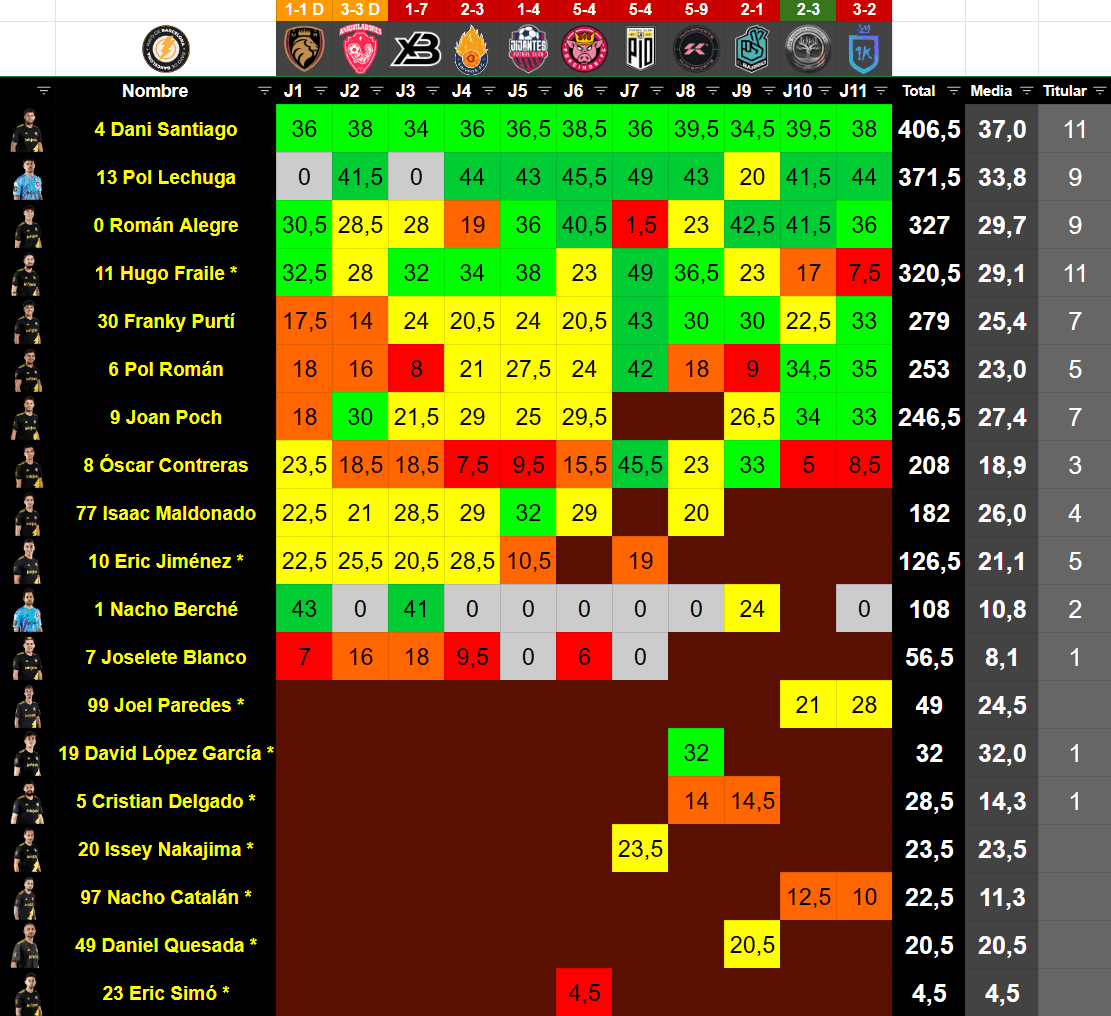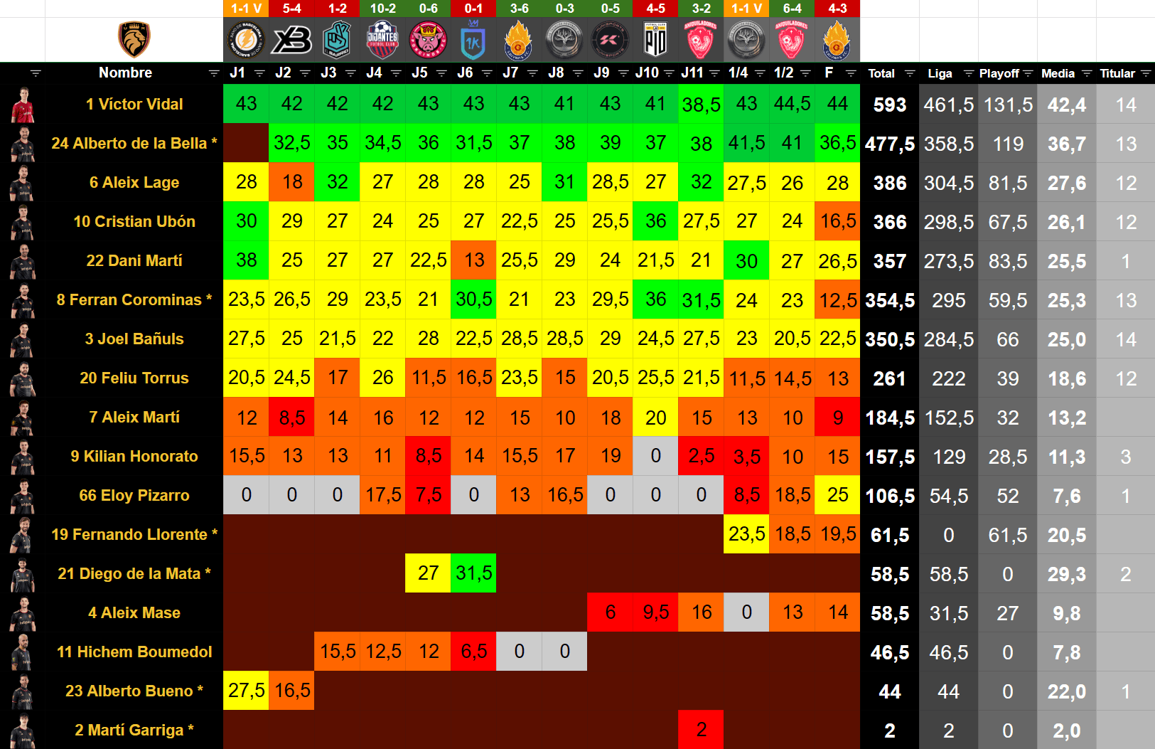 Plantilla Rayo de Barcelona (KL 24 Split 3)